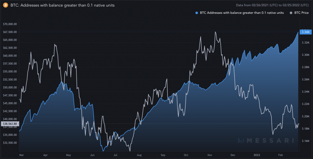 While the number of BTC addresses holding modest amounts of the cryptocurrency continues to rise. As the price of Bitcoin (BTC) rose to nearly $40,000 on Feb. 25, increasing 16 percent in less than 24 hours, buyers returned to the market, looking for additional upside chances. Investors are increasing their Bitcoin holdings According to the […]