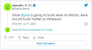 Aave's foray into social media has been in the works for a while. Aave founder and CEO Stani Kulechov said in July 2021 that the DeFi behemoth was working on a Twitter competitor (in a tweet, ironically).