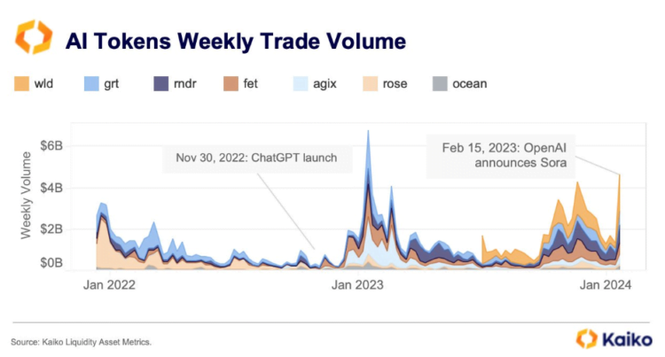 Nvidia's recent earnings report provided a boost to the AI tokens. Still, momentum for AI-related tokens has been increasing since last week, when OpenAI unveiled its text-to-video tool Sora, and the weekly trade volume reached its most significant level in a year.