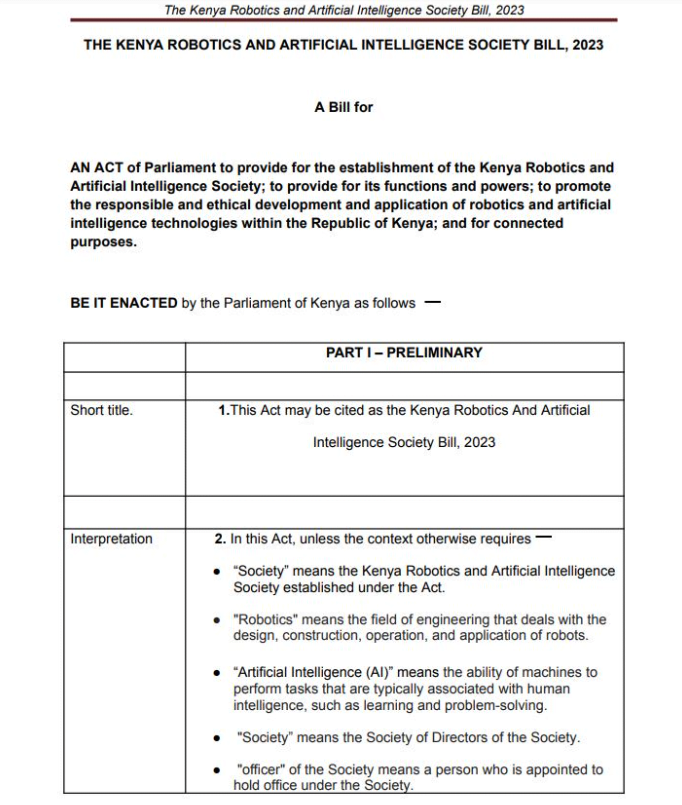 Information technology (IT) experts in Kenya have strongly advised the parliament to disregard the 2023 Robotics and Artificial Intelligence (AI) Society Bill because of its manifold deficiencies.