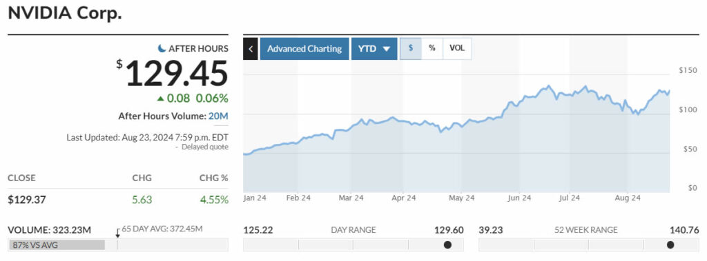 During the course of the past year, the share price of Nvidia (NVDA) has experienced a phenomenal increase of 180%, reaching an all-time high of $135 in the middle of June.