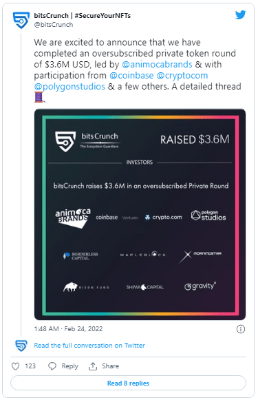 On February 25, BitsCrunch CEO Vijay Pravin Maharajan said that his company currently supports NFTs on Ethereum (ETH), Polygon (MATIC), and Avalanche (AVAX), but that he plans to use the funds “to expand the team that can focus on securing many prominent blockchains like Solana (SOL), Polkadot (DOT), Algorand (ALGO), and others.”