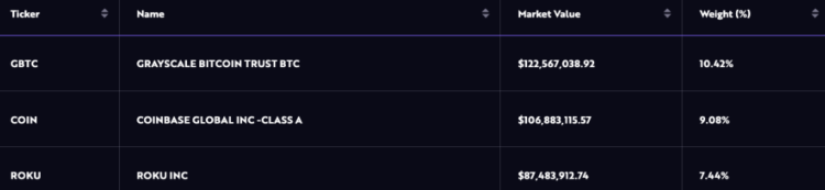 The most recent GBTC sale represents approximately 2% of the total GBTC value in ARKW's portfolio or $122.6 million as of October 23. GBTC is the largest asset held by ARKW, accounting for 10.4% of the product's exposure, followed by Coinbase and Roku's shares, which account for 9% and 7.4% of the product's exposure, respectively.