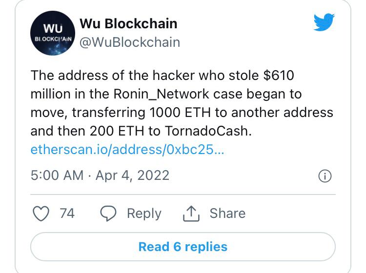 The stolen Ethereum linked to the Axie Infinity Ronin bridge hack has reportedly been discovered to have some movement on the blockchain address.