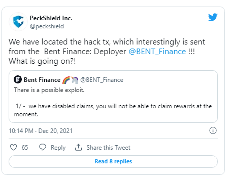 Bent Finance keeps telling its pool investors to take their money out until the exploit is fixed with each new update. However, the company says it will get back all the money that was stolen from the Bent curve pool: