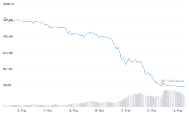 The UST stablecoin, which was supposed to maintain its 1:1 peg with the US dollar, fell as low as $0.30 on May 11, while its sister token LUNA lost more than 99 percent of its value at the time of writing.