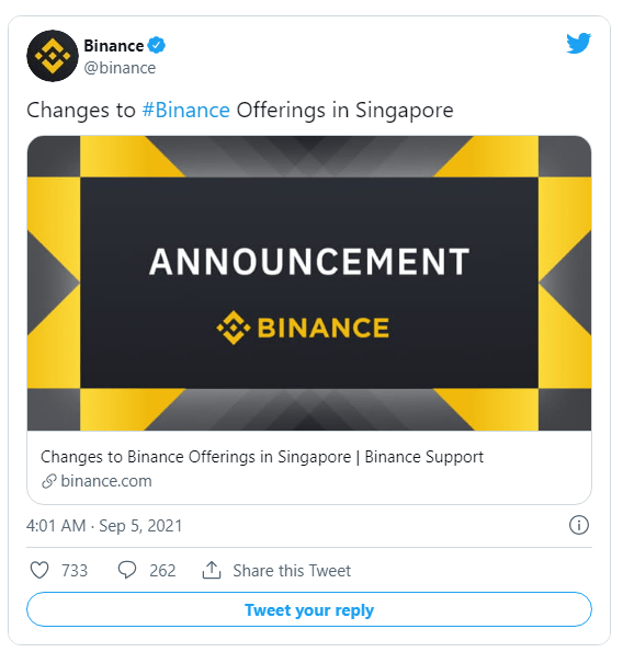 On September 1, Binance was added to the regulator's investor alert list for the first time. “Unregulated persons who, based on information obtained by MAS, may have been incorrectly interpreted as being licensed or regulated by MAS,” according to the list.