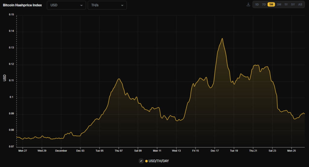 On Christmas Day, the mining hash rate, or computing power, of the Bitcoin network attained a new all-time high. However, this has increased the pressure on miners amid a decline in profitability.