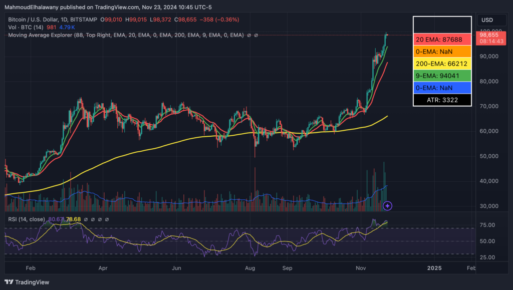 Increased demand from the recent US presidential election and other macroeconomic factors further stressed the already limited supply of Bitcoin in November 2024.
