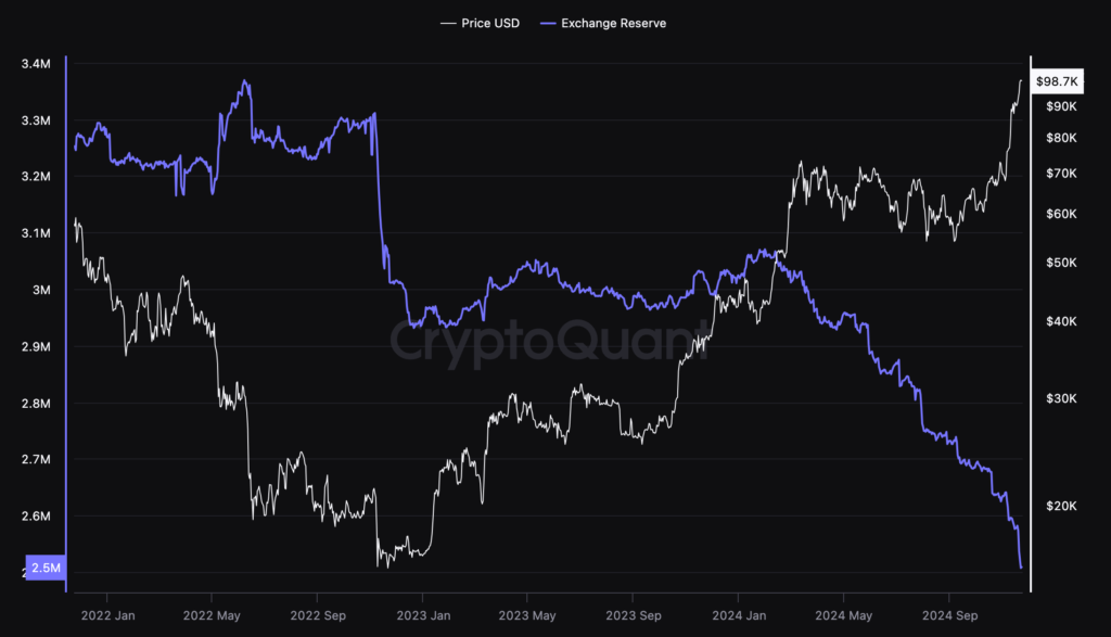 In June of 2024, the Bitcoin exchange reserves, a statistic that measures the total quantity of Bitcoins available on exchanges, plummeted to a level unseen in three years. As the reserves held by Bitcoin exchanges continued to decrease, they reached yet another low point in August of 2024.