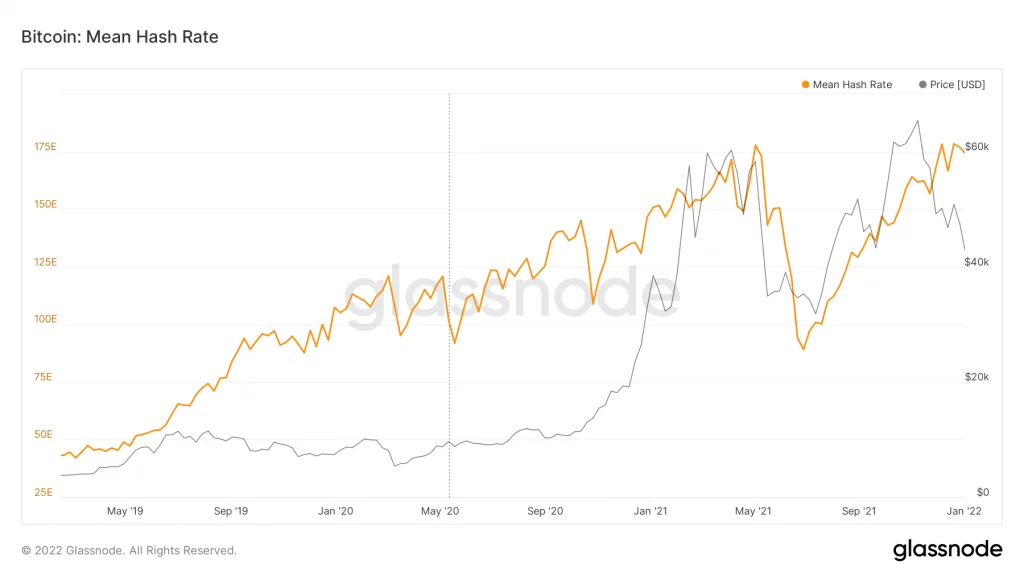 By the end of last year, the Bitcoin network had recovered from a significant hash rate drop and was only growing in 2022.