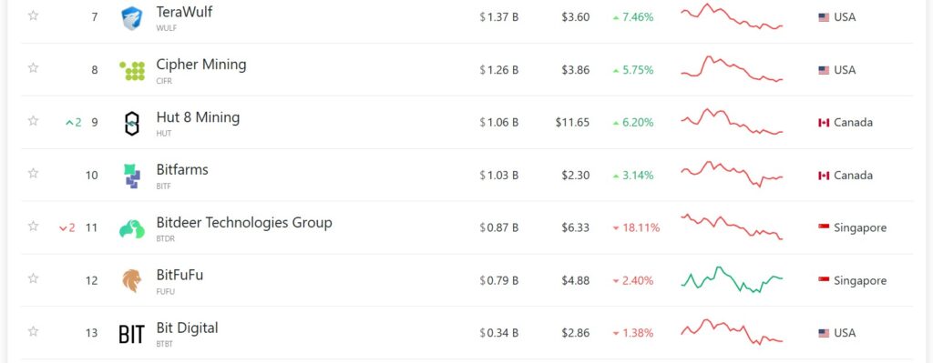 Bitdeer Technologies is the world's eleventh largest cryptocurrency mining firm, according to market capitalization rankings. According to statistics provided by CompaniesMarketCap, the firm's trade price is approximately $870 million, placing it ahead of competitors such as BitFufu and Bit Digital.