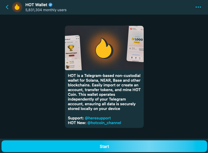 An example of a blue tag-checked Mini App wallet on Telegram (Hot Wallet). Source: Telegram