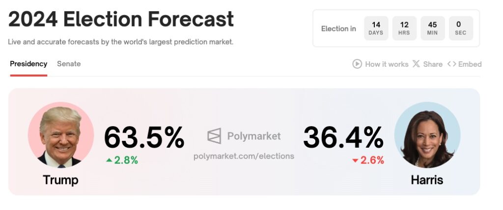 “The main drivers are Trump’s rising odds of winning the election and a technical rebound in Bitcoin’s price. Trump is a known supporter of Bitcoin, and his increasing odds of winning are seen as a positive signal for the market”.
