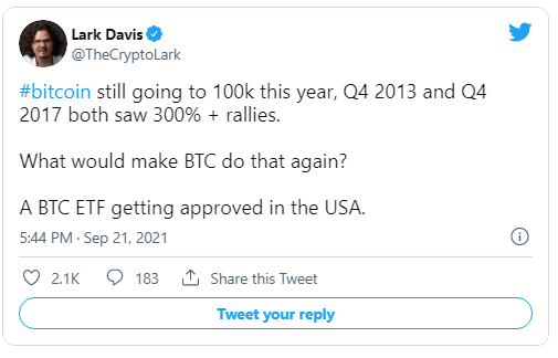 Lark Davis, a crypto YouTuber, agrees with McGlone's price forecasts, noting that the last quarter of prior bull markets in 2013 and 2017 saw massive price increases.