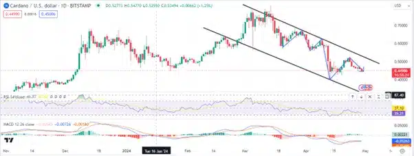 A definitive ascendance beyond this threshold could ignite a surge, propelling ADA towards $0.5250 and conceivably even $0.5650 if the current sentiment is favorable.