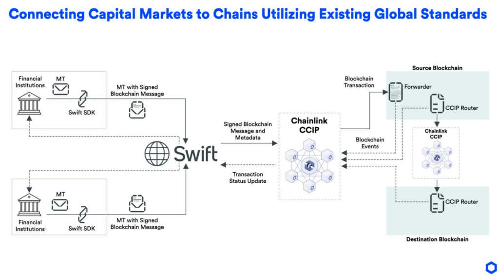 Infographic depicting Chainlink’s CCIP integration with Swift for new blockchain-based payments. Source: Chainlink