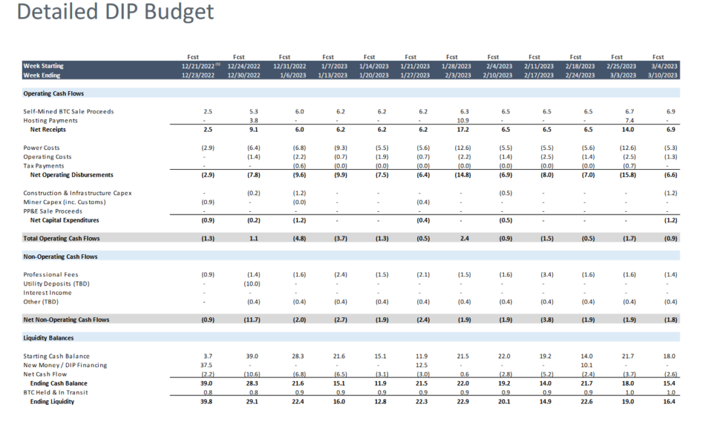 However, it was anticipated in the first DIP budget that Core Scientific would submit a $12.5 million application by January 21.
