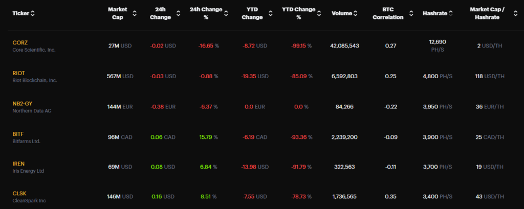 Over the course of the year, the share price of Core Scientific has decreased by 99.15%, while that of Iris Energy and Riot Blockchain has decreased by 91.79% and 85.09%, respectively.