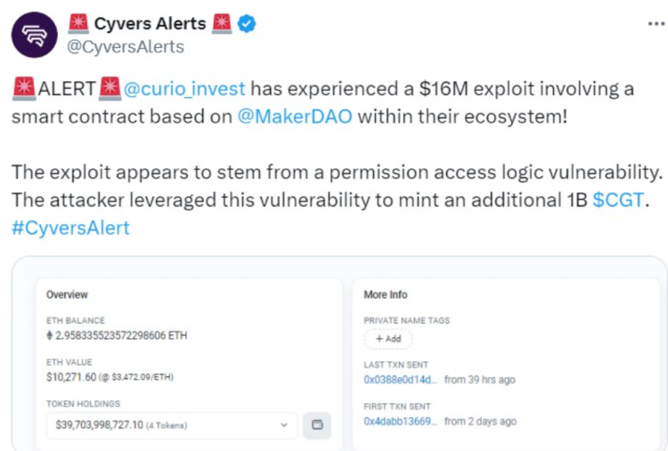 Curio Smart Contract Platform Faces $16M Digital Assets Exploit