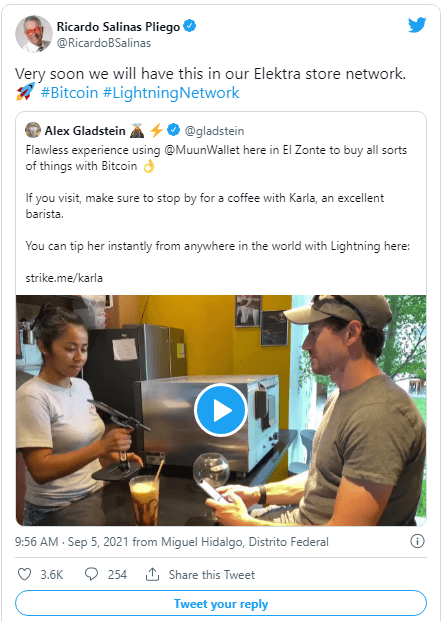 Mexican retailing and banking firm Group Elektra will soon add Bitcoin lightning payment across their store network according to the own Billionaire Ricardo Salinas Pliego.