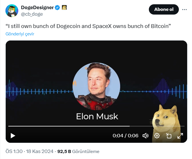 A voice recording of a close friend of Musk has revealed that he still has a significant quantity of Dogecoin in his possession. The recording also indicates that SpaceX maintains a substantial amount of Bitcoin, although the precise amount is not disclosed due to its private company status.
