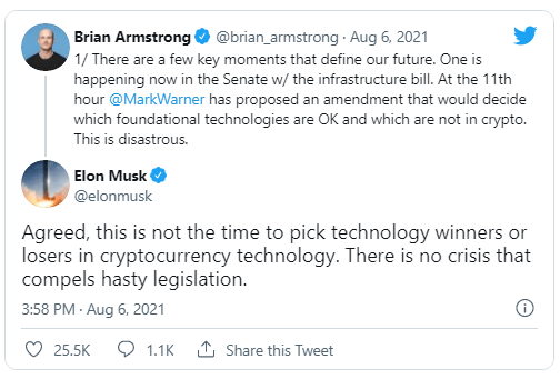 At the moment, the most heated debate in the crypto space is about crypto taxes amendments in the US Infrastructure Bill, CEO Elon Musk also has his take on the issue.