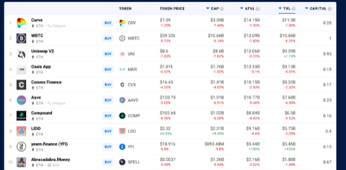DeFi based on Ethereum is likewise in trouble. In terms of total value locked (TVL) and native asset token price, eight of the top ten projects have been in the red over the past month.