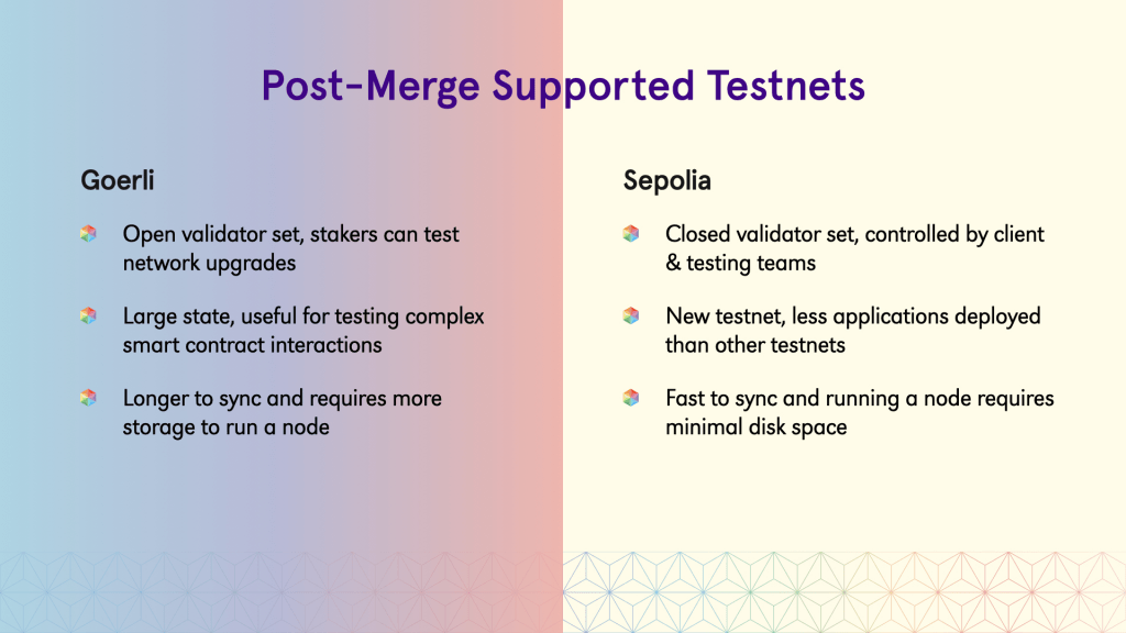According to a team blog post, after the integration, only the two testnets Goerli and Sepolia would be maintained.