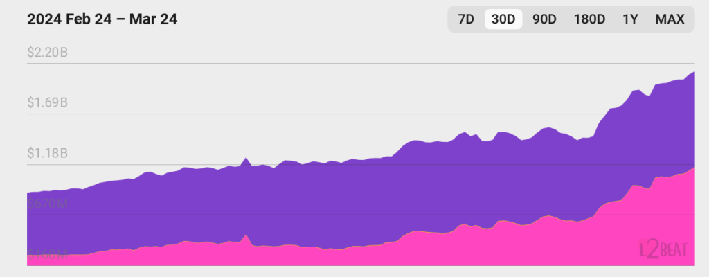 TVL surpassed $1 billion in funding by Base on February 27, 226 days after its August inception. However, according to data from L2 Beat, the network surpassed the $2 billion mark on March 23, only 25 days later.