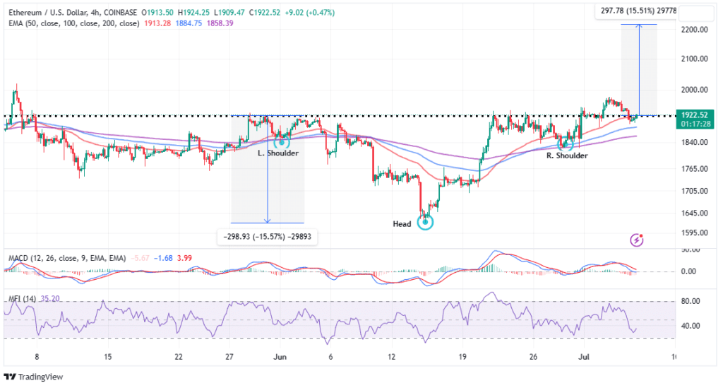 Ethereum price is reaffirming its favorable outlook with a potential 15.5% breakout to $2,220 from the head-and-shoulders pattern.