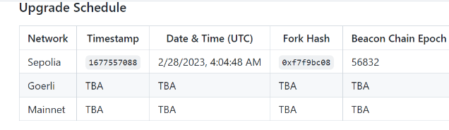 The Ethereum Shapella (Shanghai/Capella) update is now scheduled for February 28. The upgrade is only for the Sepolia network and a subsequent upgrade for the Goerli network and will make way for un-staking ETH.