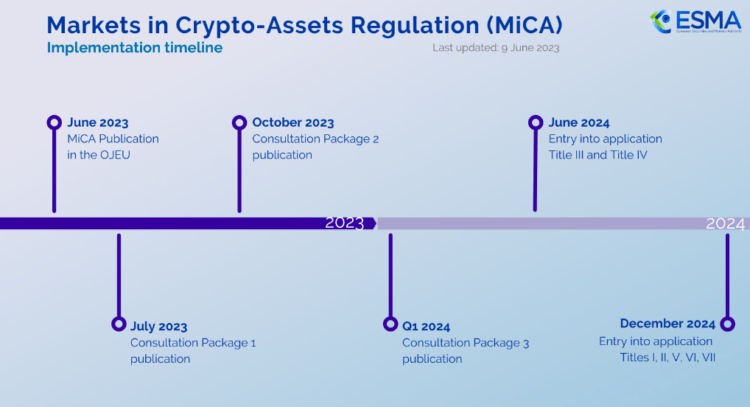 During the implementation phase of MiCA, the ESMA and other relevant authorities are responsible for conducting public consultations on various technical standards expected to be published in three packages in sequential order.