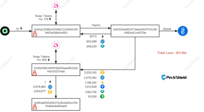 PeckShield illustrates the flow of funds from the attack. Source: PeckShield