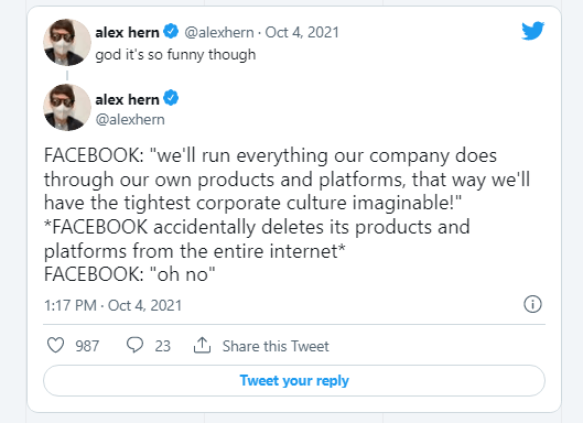 It's one of Facebook's worst outages to history, affecting its 2.89 billion global users as well as those who use its linked services. In 2019, Facebook experienced a 14-hour outage, compared to a one-day outage in 2008, when the service had only 150 million users.