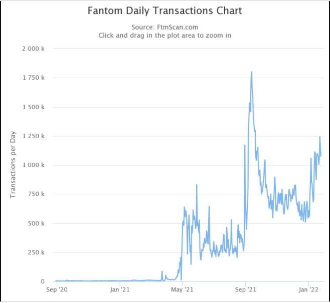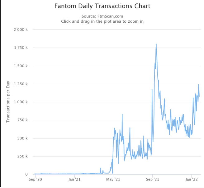 However, the number of transactions on Fantom on Monday was still lower than the all-time high of 1.8 million in September 2021, a month before the price of FTM tokens peaked at $3.46.