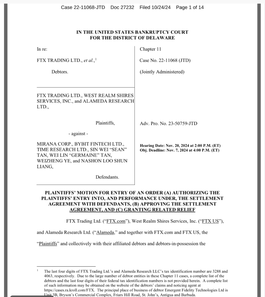 FTX's bankruptcy estate settled with Bybit on October 24 to resolve a 2023 lawsuit seeking funds to repay clients and creditors.