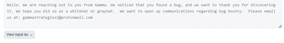 Gamma Strategies Attempts to Negotiate Bounty with Hacker