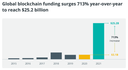 Last year, blockchain businesses raised $25.2 billion in venture capital, including 59 “mega-rounds” worth more than $100 million each, according to reports.