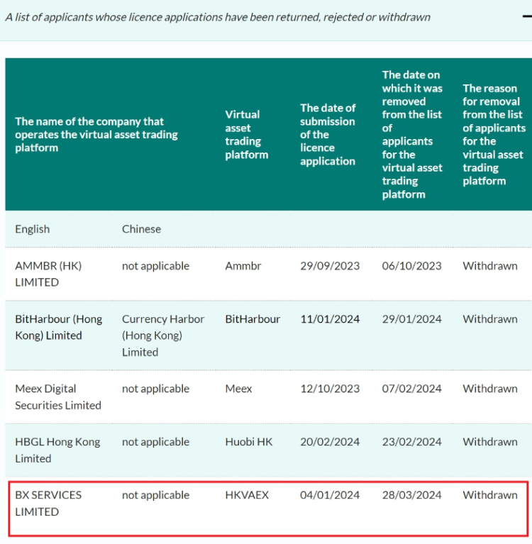 HKVAEX, a crypto exchange purportedly associated with Binance, withdrew its license application to the Securities and Futures Commission of Hong Kong (SFC) on March 28, nearly three months after the filing.