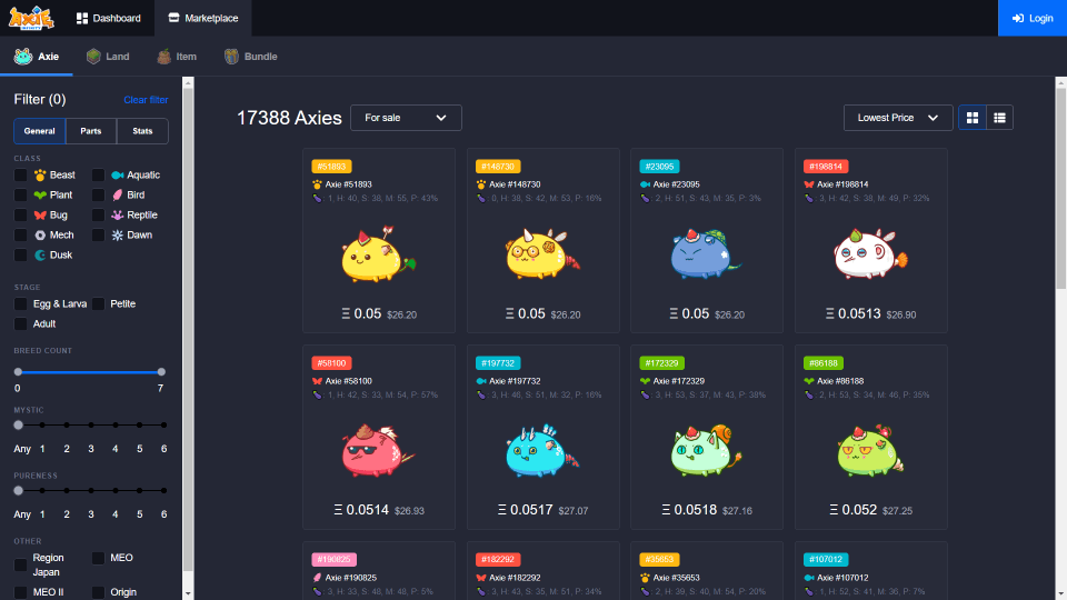 As CryptoSlate reported, Axie Infinity is a Pokémon-inspired “digital nation” where users can collect and train fantasy creatures, called Axies, and pit them against other players’ pets. However, unlike most traditional games, Axie players can also earn crypto rewards—and sell them for quite real, physical fiat money. Axie developer SkyMavis explained: