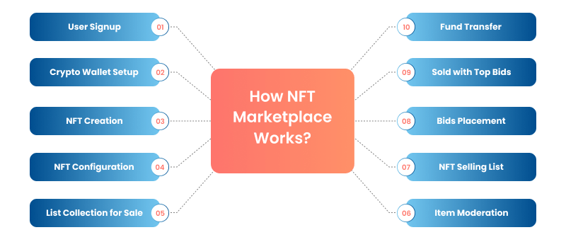 Here are the steps you should take if you want to start an NFT art marketplace for your company: