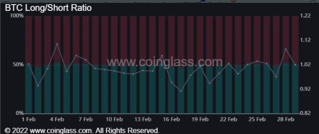 According to Coinglass statistics, Bitcoin's rise to $44,000 unwound an increasing number of short positions. Because of the increased use of the token as a result of the Russia-Ukraine crisis, the crypto market has risen.
