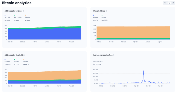 These metrics are mirrored by Bitcoin analytics from CoinMarketCap, which monitors the time wallet addresses have held BTC. 69%, or 36.8 million addresses, have held Bitcoin for over a year.