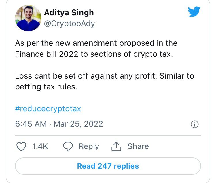 The fact that the new crypto tax was substantially inspired by countries' gambling and horse betting tax legislation is another source of resentment within the crypto community. This means that the Indian government considers the cryptocurrency market to be similar to gambling.