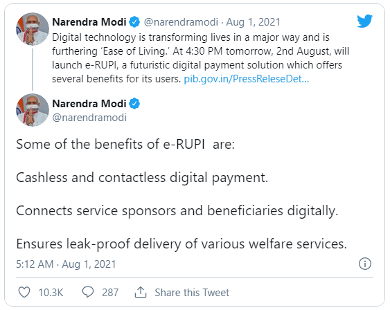India's digital payments system is about to undergo a big revamp later today! Prime Minister Narendra Modi said on Sunday, August 1 that on Monday, August 2 at 4:00 p.m. IST, he will launch e-RUPI, a futuristic digital payment solution.