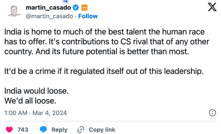 “India believes in AI and is all in not just for talent but also as part of expanding our Digital & Innovation ecosystem. India’s ambitions in AI and ensuring Internet users get a safe and trusted internet are not binaries.”
