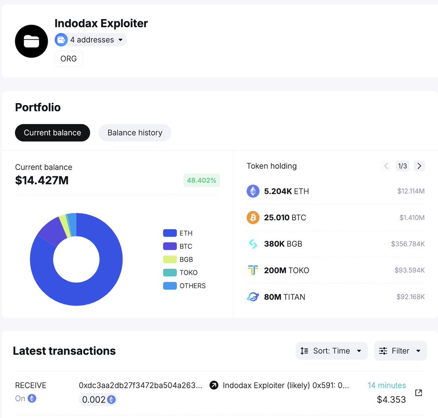 In an X post, the Onchain analytics platform disclosed that the Indonesian crypto exchange Indodax had been the victim of a $20 million exploit. In addition, the platform disclosed that the majority of the stolen assets had been exchanged for native cryptocurrencies by the perpetrator.