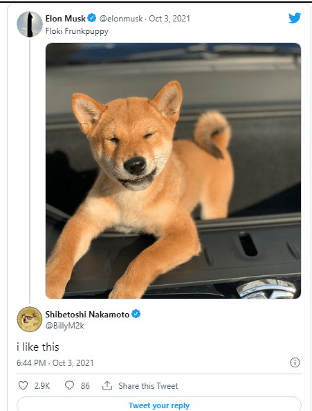 According to Coinbase.com, the SHIB currency has grown by 8,000 percent in the last year. Several others commented on Musk's Floki article, including the founder of Dogecoin, Shibetoshi Nakamoto, on Twitter.