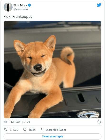 When he announced that he was receiving a Shiba Inu and would call it Floki, a slew of new cryptocurrencies bearing the dog's name popped up. The entrance of Floki resulted in a price increase for the spin-off currencies.